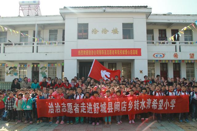2014年11月13日上午,洽洽志愿者一行12人来到舒城县阙店乡转水湾洽洽希望小学,为全校183名学生带去了洽洽的礼物,把阳光和快乐播撒在孩子们的脸上。学校的每一位学生都收到了装满洽洽食品的书包,并且又多了一个玩耍的场地——洽洽出资修建的篮球场,帮助孩子们在快乐中成长。