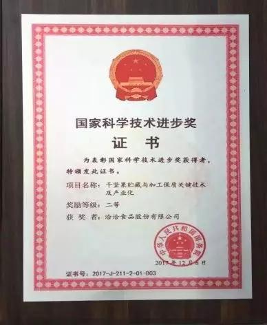 洽洽本次荣获的“中国产学研合作创新成果奖”,是继国家科学技术进步奖后,洽洽又一次获得的国家级荣誉。接连国家级奖项的肯定,充分展现了洽洽在坚果基础研究及研发领域的雄厚实力。