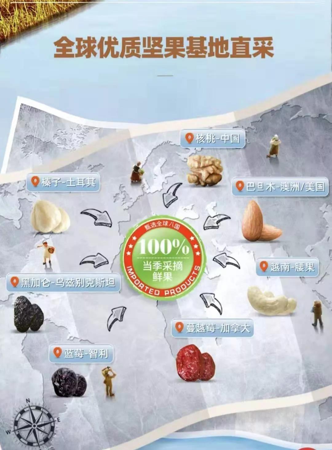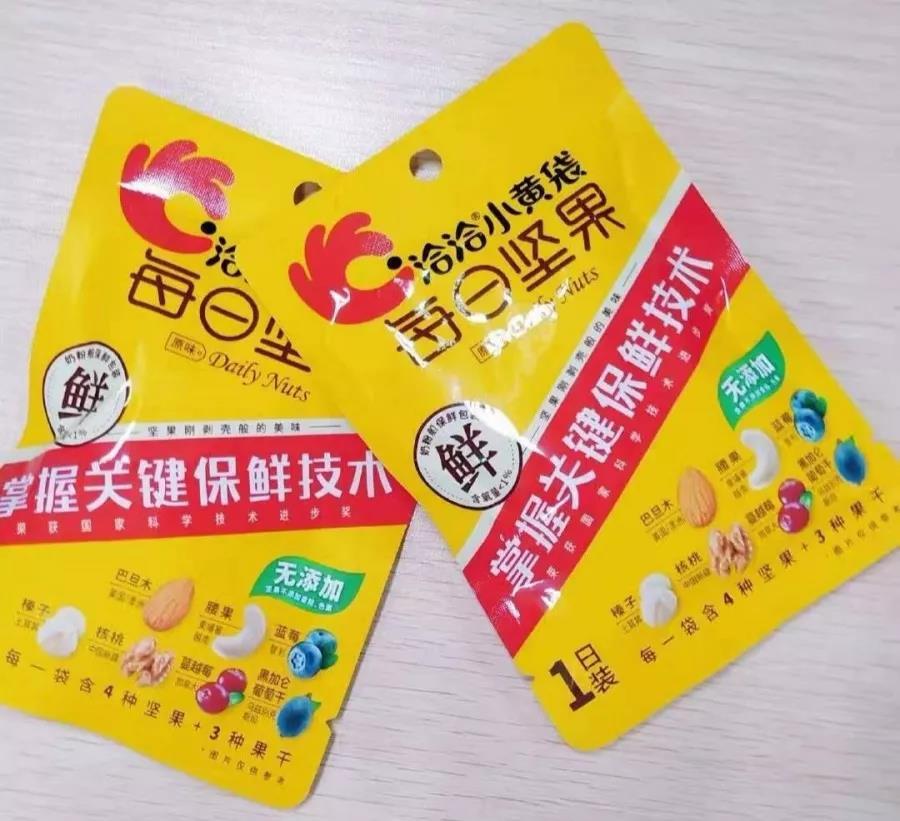 洽洽小黄袋每日坚果采用八重新鲜设计:吸氧剂杜绝新鲜变异、干燥剂避免水分迁移、袋内充氮保护、物料全程冷藏保鲜、低温慢烤最佳工艺、包材高性能阻氧、包材高性能阻湿、全球甄选新鲜原料。只为带给消费者最“新鲜”的坚果体验。