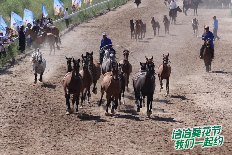 全球葵花节开幕式结束后,众人受邀来到了蛮会镇海龙马产业赛马表演的现场,赛场上人们策马扬鞭,一展骑士本色,观众们高声呐喊,助威赛事。精彩的马术表演不仅吸引了来自全旗各乡镇和周边地区赛马爱好者的参与,也成为此次溯源之旅的重要亮点之一。政府副旗长王新禄指出,绽放的向日葵和奔腾的骏马不仅搭建了沟通的桥梁、连起友谊的纽带,更为洽洽与内蒙巴彦淖尔地区的合作奠定了坚实基础。