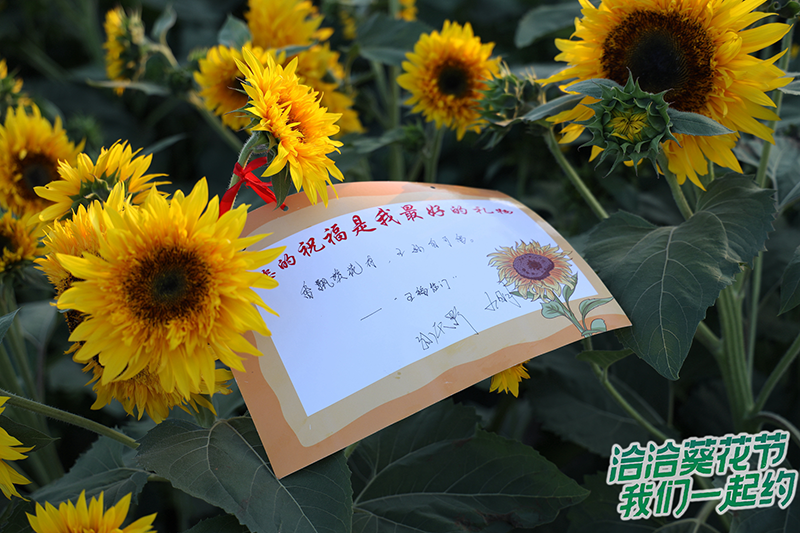 葵园主要设置了“装置拍照区”、“写真打卡区”、“艺术写真区”以及“认领区”等区域。“装置拍照区”以一个充气的大型洽洽香瓜子包装吸引了大多数人的眼球,从高处往下看,盛开的向日葵仿佛从包装袋中倾泻而出一般;而“写真打卡区”、“艺术写真区”设置了一系列特色背景板方便消费者粉丝打卡拍照;“认领区”则是全新设置的创意景点,消费者可以在该区域认领一株向日葵并写上自己的祝语,等葵花籽成熟后则可以获得一个完整的葵花盘……到场的消费者在接收到官方发布的拍照打卡任务,纷纷前往各个区域前进行驻足打卡,每个区域都因其鲜明的特色而人气爆棚。
