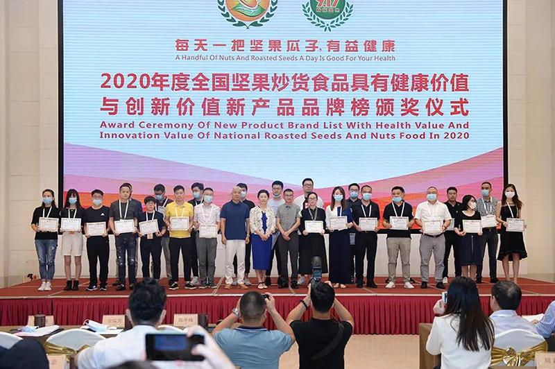 大会现场还发布了2020年度全国坚果炒货食品具有健康价值与创新价值产品品牌榜,洽洽坚果产品凭借新鲜品质入选榜单,洽洽电商负责人杨东岳现场接受颁奖。