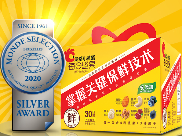 2月5日,“2021新春我喜爱的坚果炒货食品”推选活动取得圆满成功,洽洽食品的“小蓝袋益生菌每日坚果”和“小黄袋每日坚果”被消费者推选为“2021新春我喜爱的坚果炒货食品”。