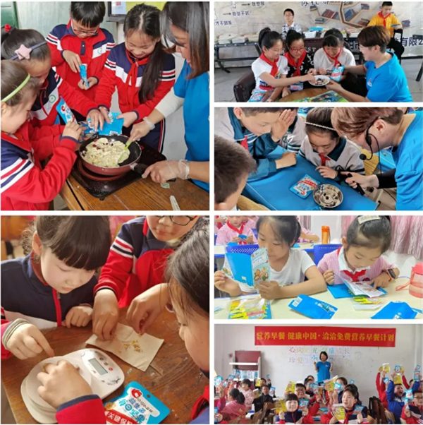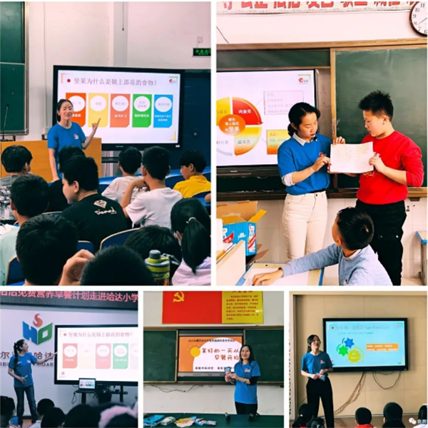 “洽洽免费营养早餐计划”以“美好的一天从早餐开始”为主题,由注册营养师和专业食育讲师以问题的形式科普早餐应该如何吃,以及为什么早餐最好搭配坚果等健康膳食知识;并总结出“4+1”的合理早餐概念,即谷薯类、奶豆类、肉蛋类、蔬果类+坚果类早餐,帮助学生们构建合理膳食,健康成长。课堂上营养师还会通过现场的互动实践,告知学生们坚果应该怎么吃,每天吃多少坚果是最适宜的。例如,在合肥洽洽希望小学,学生们用洽洽小蓝袋益生菌每日坚果DIY美味的坚果雪花酥,受到了师生的一致好评,真正实现了“美好的一天从早餐开始”!