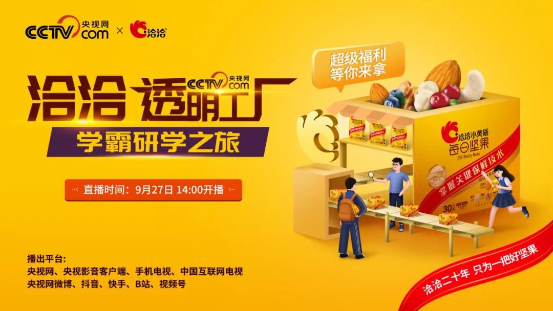 福利一:300份洽洽小黄袋每日坚果随时抽进入央视网直播间
