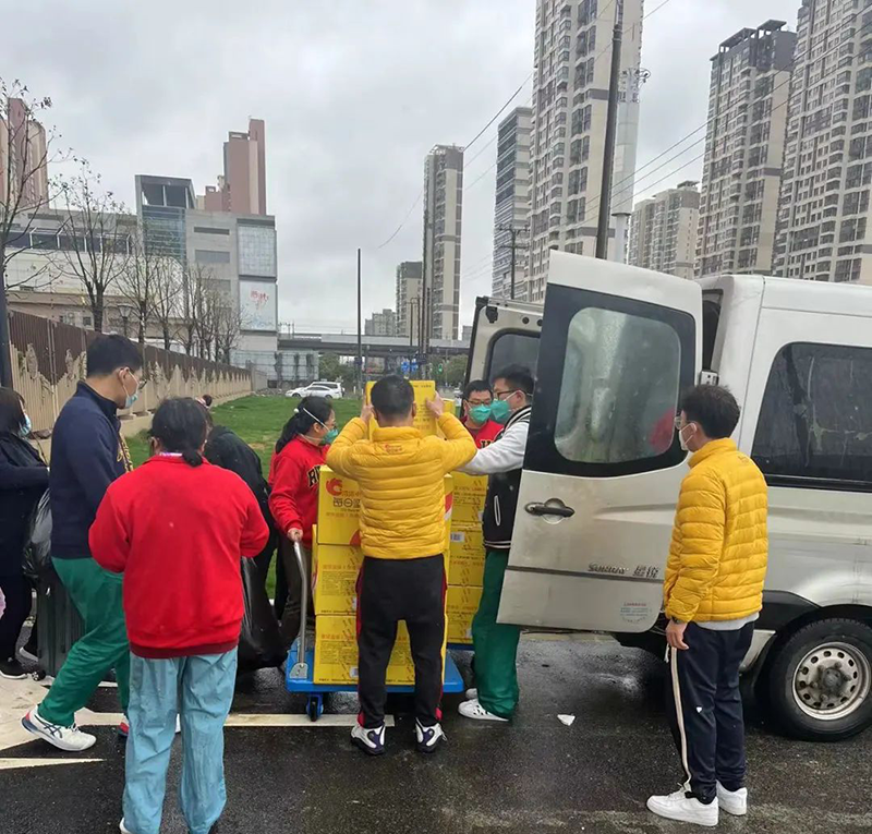 25日清晨,洽洽援助小组成员冒雨跟车深入疫情防控一线,第一时间将洽洽坚果产品送到上海瑞金医院抗疫一线的医护人员的手中,为他们的营养健康保驾护航。